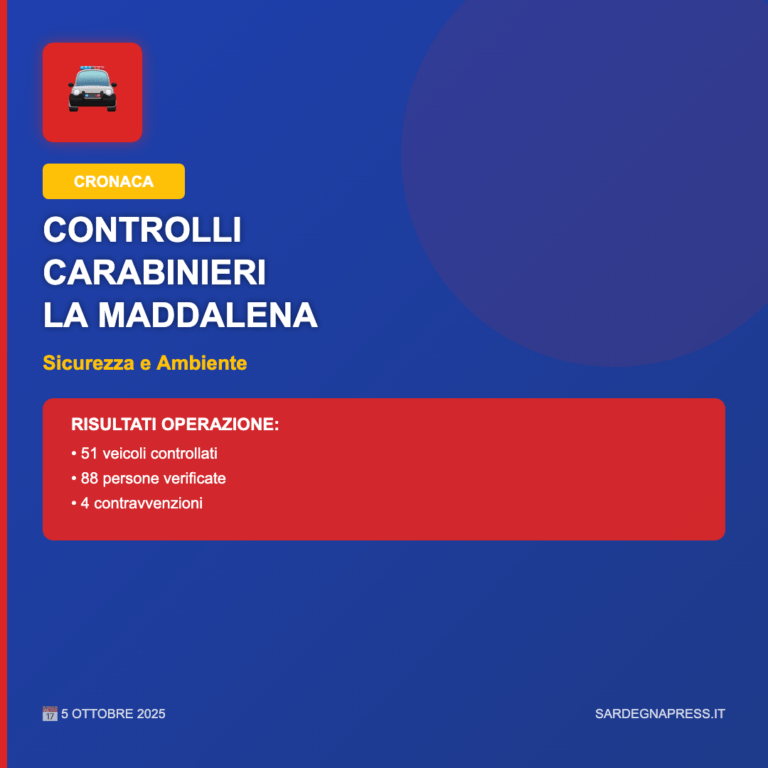 Controlli Carabinieri La Maddalena – SardegnaPress.it 5 Ottobre 2025 CRONACA La Maddalena: Controlli coordinati dei…
