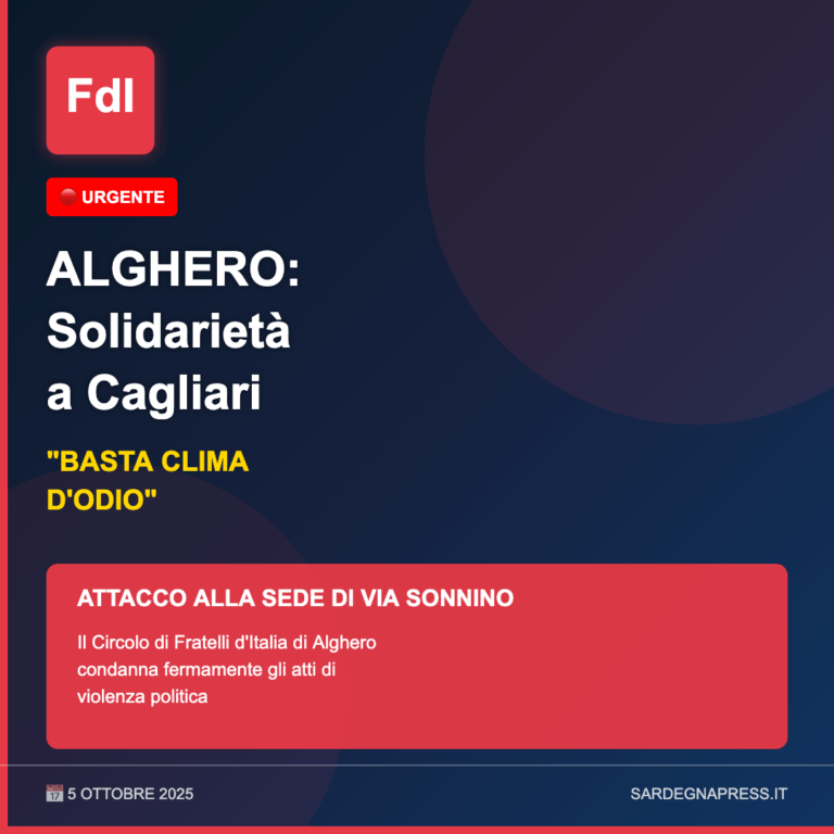 Fratelli d’Italia Alghero – Comunicato Stampa 5 Ottobre 2025 POLITICA ▼ Seleziona categoria: Politica Cronaca…