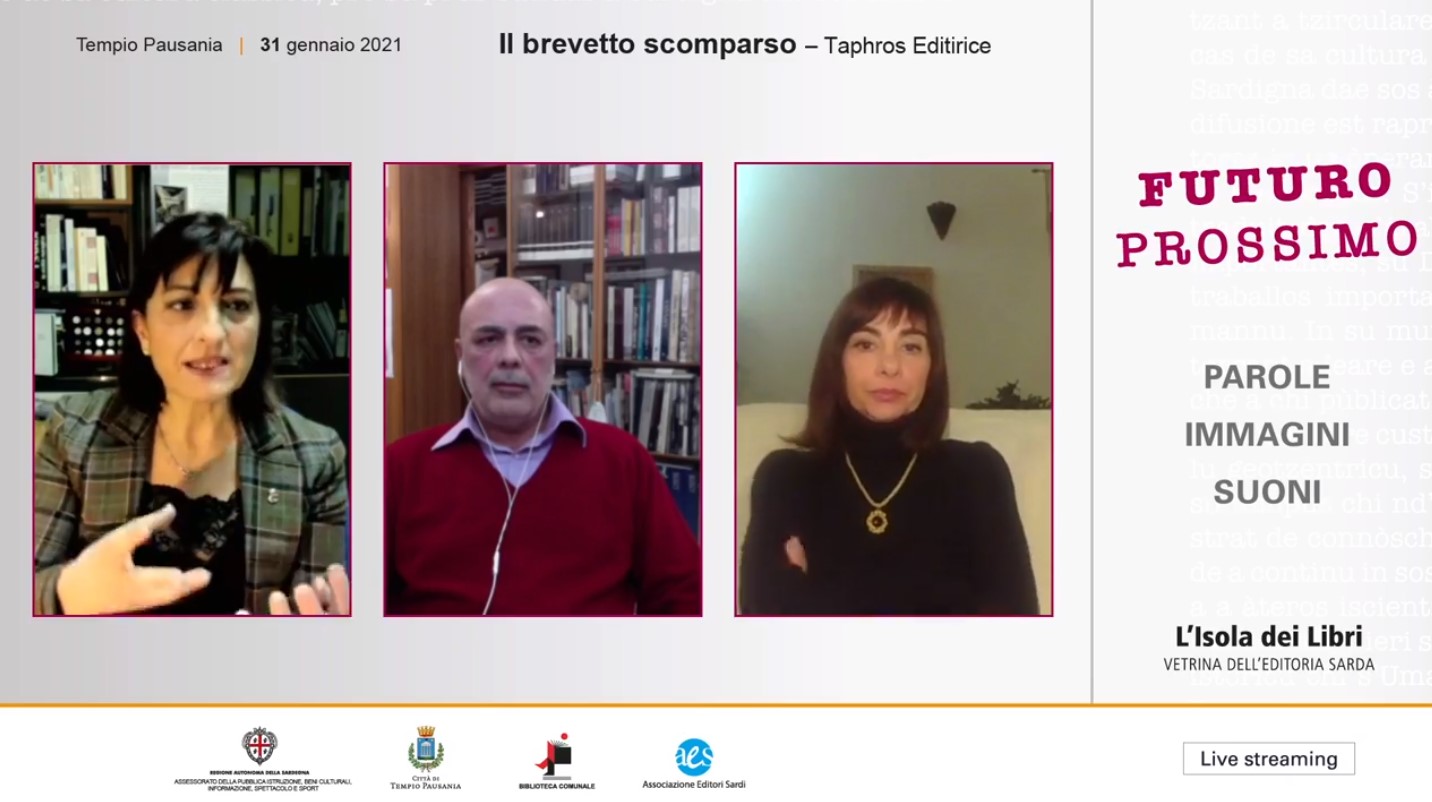 Tutte le presentazioni sono state partecipate, con un’ampia soglia di visualizzazioni. Nel romanzo “Il brevetto scomparso” (Taphros) di Lidia Fancello si respira l’atmosfera della Tempio di un secolo fa, attraverso una scrittura di getto sulla base di ricordi orali da un lato e ricerca archivistica dall’altro. Assieme a Marianna Bulciolu e all’editorie Dario Maiore, l’autrice ha illustrato la leggenda familiare di Bachisio Fancello che negli anni Venti sperimentò e brevettò l’invenzione della colonna sonora, depositandone il progetto negli uffici del Ministero dell’Industria. Nel testo si stagliano le vicissitudini di un protagonista, amico di Gavino Gabriel, che era anche il proprietario delle sale cinematografiche di Tempio, Aggius e Calangianus.