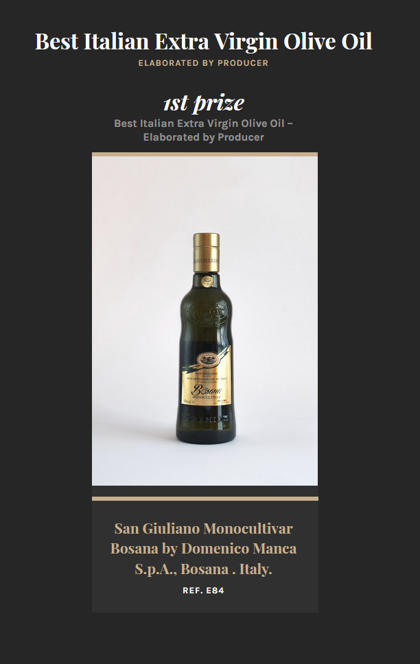 Il 2021 segue l’andamento del 2020 quando l’Oleificio San Giuliano si è classificato ventesimo assoluto e primo tra i produttori i italiani nella classifica mondiale degli extravergini Evoo World Ranking grazie ai 32 premi di qualità ricevuti nelle competizioni internazionali. Successi conquistati, per citarne alcuni, a New York, Los Angeles, Zurigo, Tokyo, Londra, Madrid, Bari e Gerusalemme.