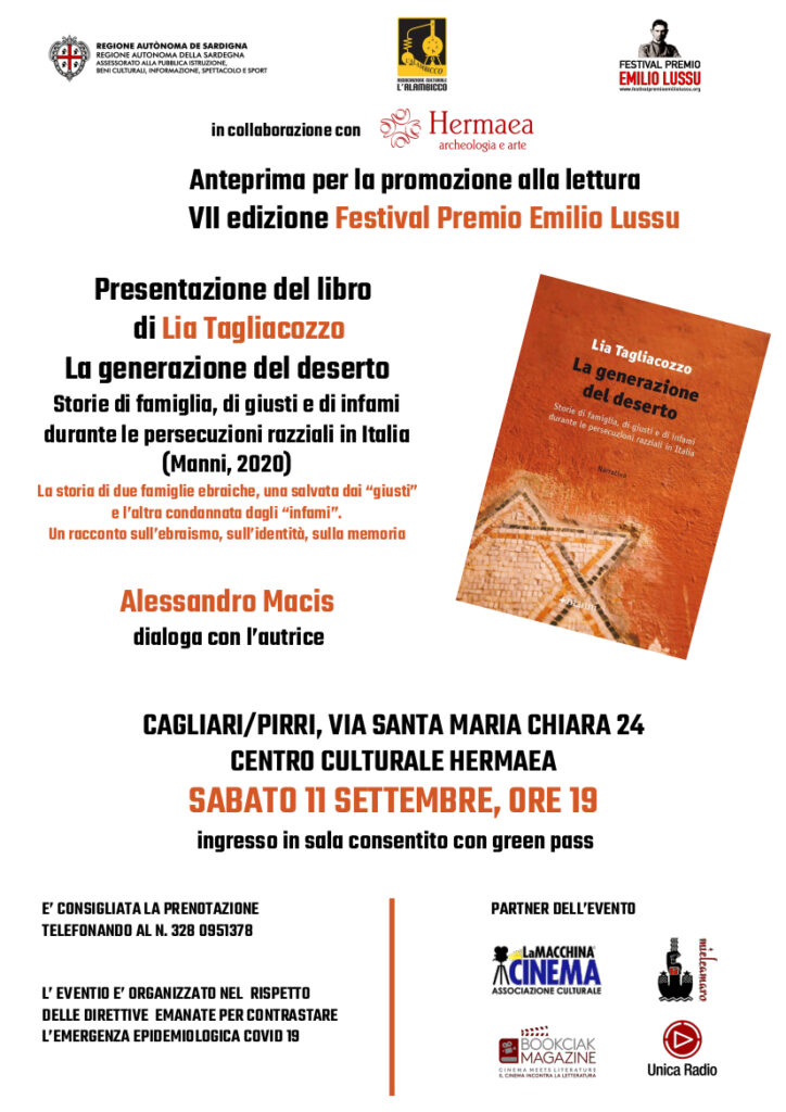 CAGLIARI. È la storia di due famiglie ebraiche, una salvata dai “giusti” e l’altra condannata dagli “infami”. Un racconto sull’ebraismo, sull’identità e la memoria racchiuso in un libro. Sabato 11 settembre alle 19 al centro culturale Hermaea di via Santa Maria Chiara 24/A a Cagliari/Pirri, la scrittrice di origini ebraiche Lia Tagliacozzo presenta “La generazione del deserto. Storie di famiglia, di giusti e di infami durante le persecuzioni razziali in Italia” (Manni Editori, 2020).