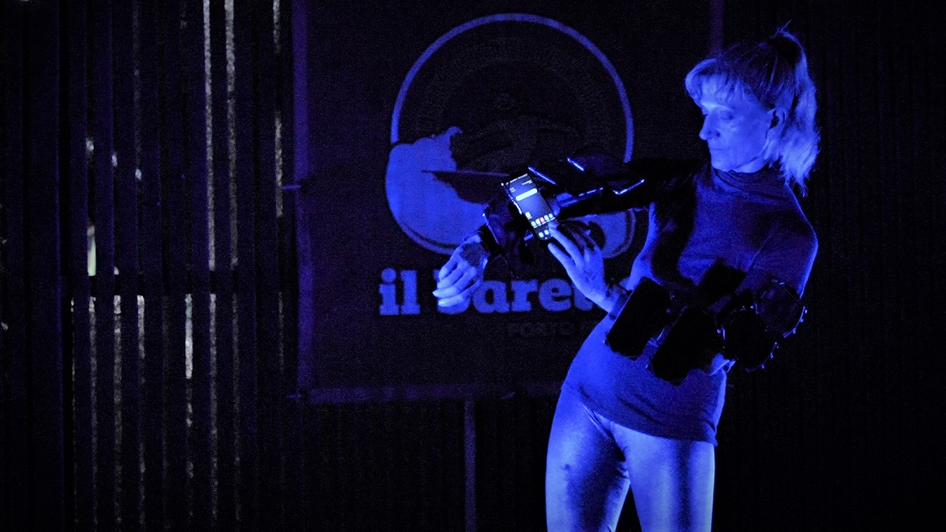 PORTO FERRO. Un corpo-clone si muove come un automa concepito per essere in ascolto, reattivo alle comunicazioni trasversali. Le braccia si protendono come antenne imbrigliate di cellulari, che ricordano file di ripetitori tv pronti a trasmettere e ricevere in contemporanea. Si presenta così “Elle_Live solo” di Ariella Vidach sul palcoscenico del Baretto di Porto Ferro per il festival Corpi in movimento organizzato da Danzeventi, tra fredde rifrazioni luminose smorzate di blu e uno sfondo musicale ipnotico e serrato. La sua danza sembra suggerire il futuro che ci aspetta, o forse un più drammatico presente, esibito all’interno di una rappresentazione iperbolica che non vuole fare sconti.