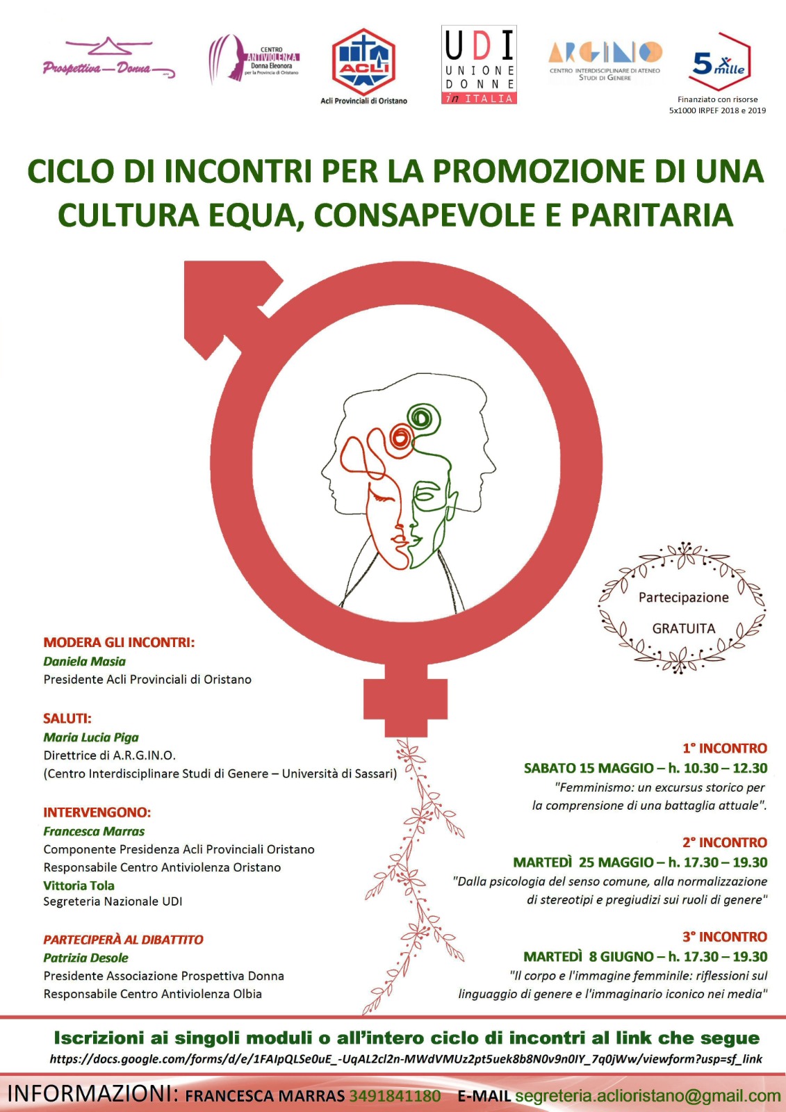 Il 15 maggio le Acli provinciali di Oristano inaugurano un ciclo di incontri online per la promozione di una cultura equa, consapevole e paritaria