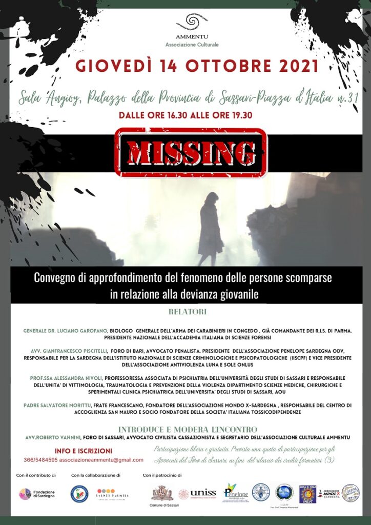 E sarà proprio questo il focus di “Missing – Convegno di approfondimento delle persone scomparse in relazione alla devianza giovanile”, introdotto e moderato dall’avvocato Roberto Vannini del foro di Sassari.