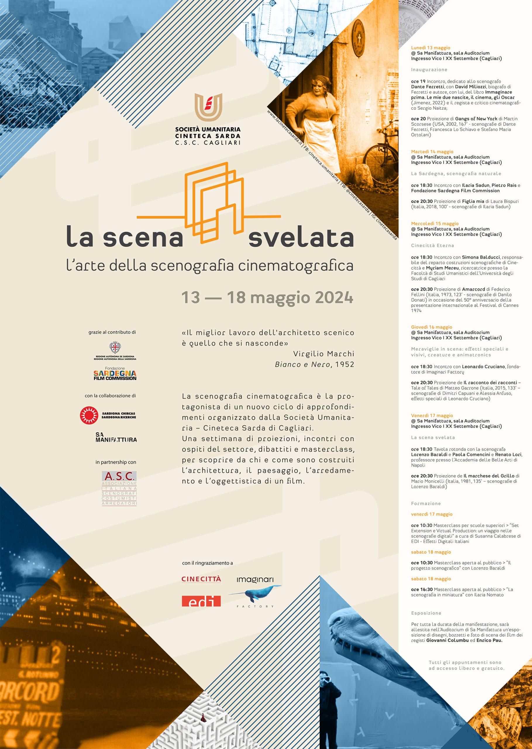 Cagliari, 12 maggio 2024 – Sei giornate interamente dedicate alla scenografia cinematografica, all’ideazione, costruzione e allestimento di scene, arredi e di tutto il comparto tecnico, ancora poco conosciuti dal grande pubblico. È ‘La scena svelata’, il nuovo progetto della Società Umanitaria – Cineteca Sarda di Cagliari, in programma da domani, lunedì 13 maggio a sabato 18 maggio nell’Auditorium di Sa Manifattura (vico I XX Settembre) a Cagliari.