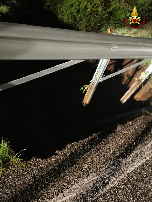 Sono 22 gli interventi effettuati nella notte per il maltempo dalle squadre di Olbia ed Arzachena. Nelle immagini lo smottamento che ha interessato la circonvallazione di Arzachena nei pressi della SP14; piogge intense e danni anche a Golfo Aranci. Nelle immagini la voragine in strada ad Arzachena.