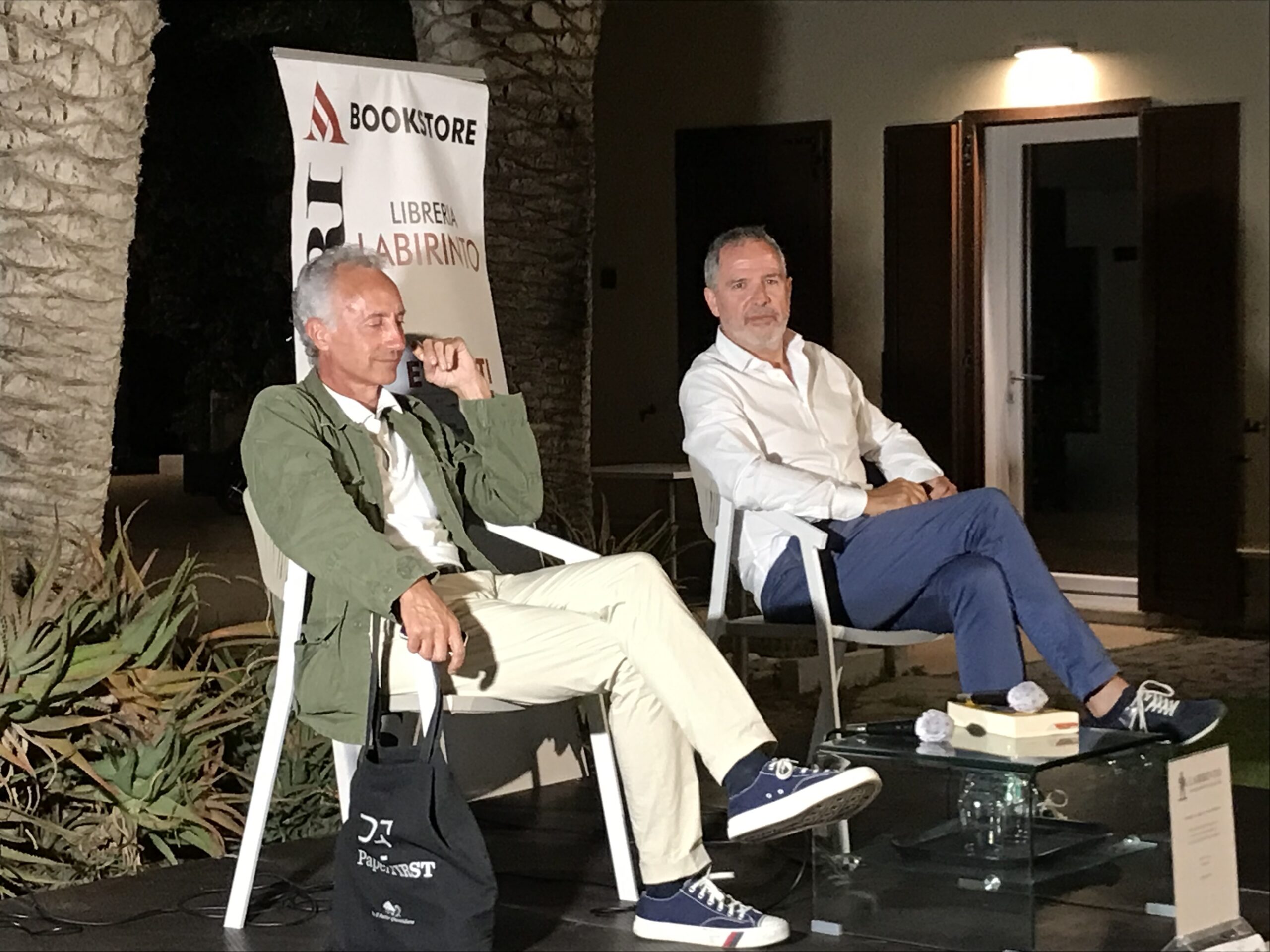 Nel giardino di Villa Mosca la serata organizzata dalla libreria ” il labirinto”. All’ Avv. Elias Vacca il compito degli onori di casa.