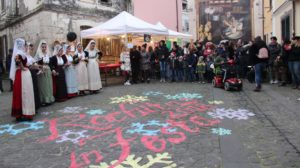 Tra le viuzze e gli spiazzi riscaldati dai falò, addensati dei profumi degli arrosti e di altre prelibatezze, anche il bagliore della luna ha concesso un tocco di ulteriori suggestioni all’atmosfera, impreziosita di spettacoli musicali itineranti tra antico e moderno.