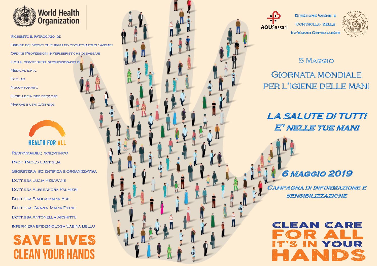 Sassari 3 maggio 2019 – Le mani costituiscono un veicolo straordinario di trasmissione di microrganismi, da una persona all’altra e dall’ambiente circostante. Lavarsi le mani quando sono visibilmente sporche, quando si entra in contatto con superfici sporche e potenzialmente contaminate come i servizi igienici, i mezzi pubblici, prima e dopo i pasti, prima e dopo aver visitato un malato, rappresenta una semplice regola per proteggere con serenità la propria e l’altrui salute. È questo il consiglio che la Direzione igiene e controllo delle infezioni ospedaliere dà ai cittadini, e non solo, in occasione della “Giornata mondiale per l’igiene delle mani”, in programma a Sassari il 6 maggio (la ricorrenza cade il 5 maggio). Tre gli eventi collegati che coinvolgeranno pubblico e personale, uno la mattina di public engagement e gli altri due il pomeriggio con una sfida creativa e le premiazioni.