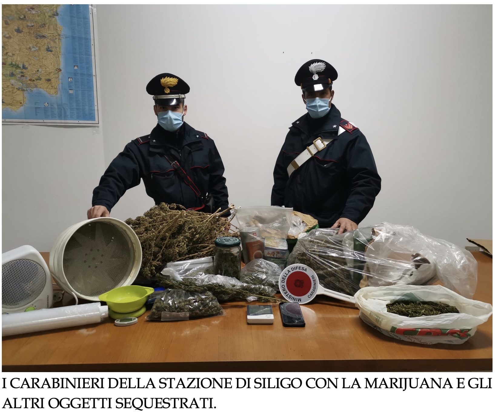 NEL CORSO DEI CONTROLLI FINALIZZATI AL CONTRASTO DELLO SPACCIO DI SOSTANZE STUPEFACENTI, I CARABINIERI DELLA STAZIONE DI SILIGO HANNO ARRESTATO N.F. – AGRICOLTORE DI 28 ANNI RESIDENTE NEL COMUNE DI BESSUDE, GIA’ NOTO ALLE FF.OO. – PERCHÉ A SEGUITO DI UNA PERQUISIZIONE EFFETTUATA PRESSO LA SUA ABITAZIONE È STATO TROVATO IN POSSESSO DI CIRCA 3 KG DI MARIJUANA. I MILITARI A SEGUITO DEL CONTROLLO, INFATTI, RINVENIVANO LA SOSTANZA OCCULTATA IN VARIE STANZE DELLA CASA GIÀ CONFEZIONATA E PRONTA PER ESSERE CEDUTA, UNITAMENTE AD UN BILANCINO DI PRECISIONE E MATERIALE IDONEO PER L’ESSICCAZIONE. L’ATTIVITÀ RIENTRA NEI NUMEROSI CONTROLLI CHE I CARABINIERI CONTINUANO A ESEGUIRE PER CONTRASTARE IL FENOMENO DELLA PRODUZIONE E RIVENDITA DI MARIJUANA SU TUTTO IL TERRITORIO LIMITROFO TUTTO IL MATERIALE È STATO SOTTOPOSTO A SEQUESTRO.