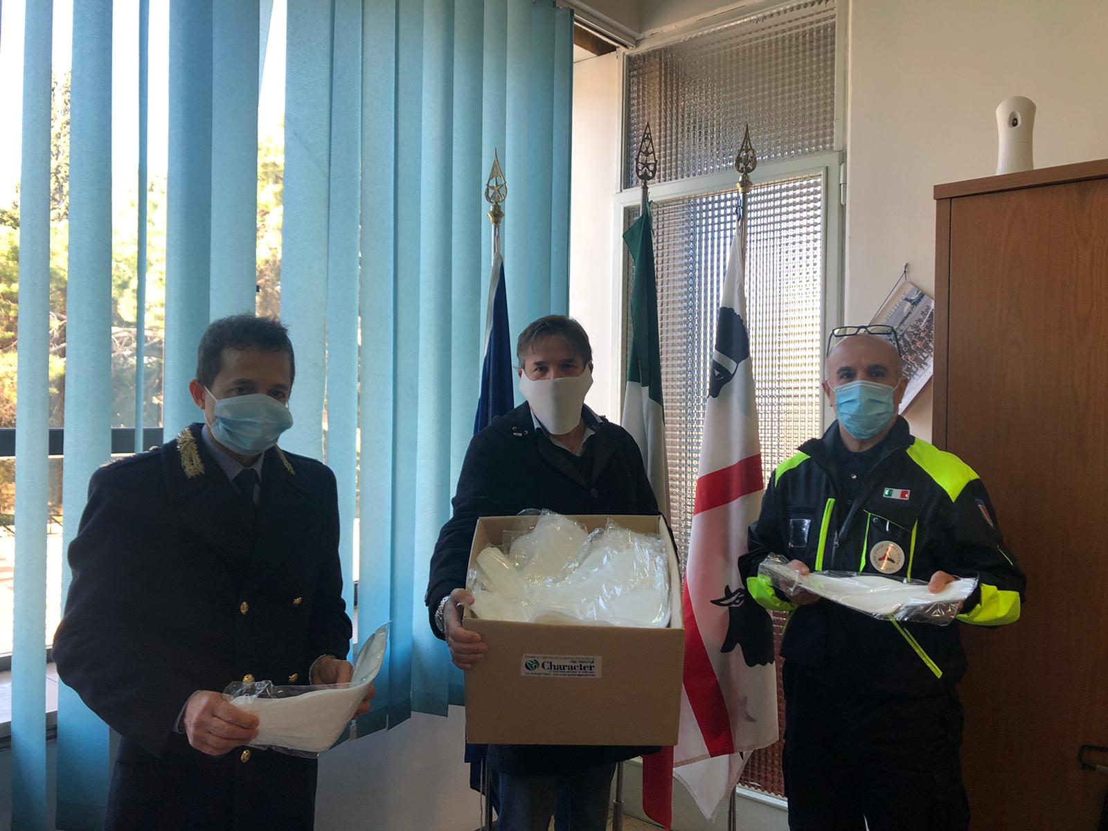 Questa mattina, nella sede della Polizia Municipale di Sassari – presenti il comandante Gianni Serra padrone di casa, il dottor Franco Pilicchi in rappresentanza della Protezione Civile e Antonello Fadda – Character ha consegnato proprio alla Protezione Civile il suo piccolo contributo all’emergenza Covid 19: la prima parte della fornitura di schermi protettivi che si spera possano essere utili a limitare il diffondersi del contagio in riferimento alle azioni della quotidianità.