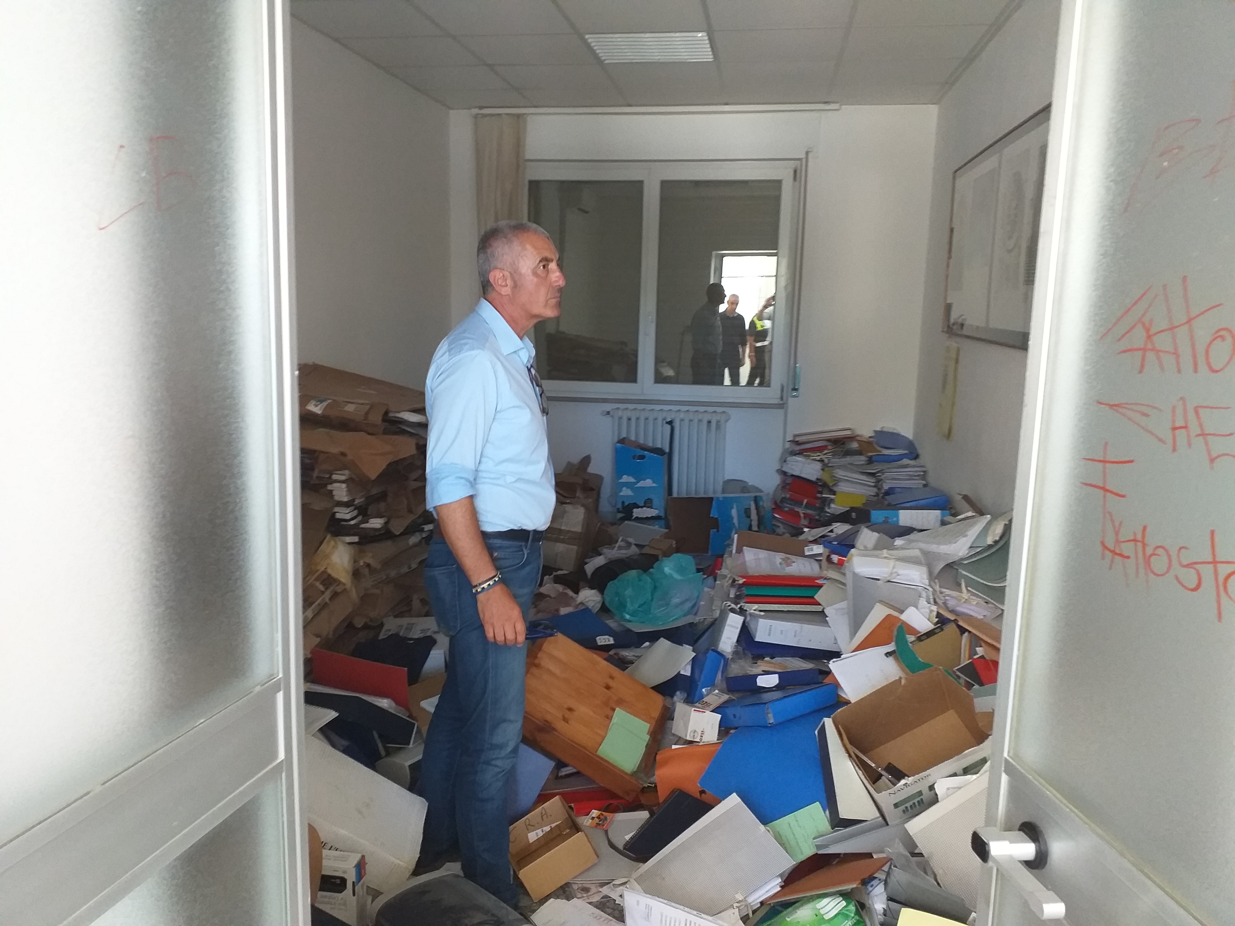 Ad un anno dallo sgombero del Centro Anziani di viale della Resistenza, il 20 luglio 2018, sembra passato un lustro. A ricordare ciò che era quel luogo fino all’anno scorso sono rimasti i pesci rossi della fontana dell’ingresso, ridotta ormai ad una fanghiglia. L’unico segno di vita. Il resto è ovunque devastazione, degrado, danneggiamenti, porte divelte, attrezzature distrutte, documenti sparsi dappertutto. C’è un profondo senso di desolazione per chi vi mette piede, specialmente per chi ha conosciuto il centro funzionante. Il primo a voler rendesi conto di persona di questo autentico disastro, annunciato, è stato il Sindaco Mario Conoci, che oggi ha visionato lo stato dei luoghi. La realtà si è dimostrata più forte della cronaca, di quella che nelle scorse settimane ha riferito dei raid vandalici. “Non ci sono parole per descrivere il sentimento di sgomento – ha detto oggi nel corso del sopralluogo effettuato a fine mattinata – una situazione di totale abbandono. È stato distrutto quanto di buono c’era. Ho scoperto ora che le attrezzature costosissime del settore cultura acquistate con centinaia di migliaia di euro di fondi europei sono in completo abbandono e sono state vandalizzate. E poi – aggiunge – c’è il resto della struttura, gli uffici sei servizi sociali le stanze dei degenti, archivi recentissimi, sino al 2015, con cartelle degli utenti e relativi dati sensibili lasciate in balia di chiunque, insomma una situazione di totale abbandono, oltre ai crolli. Ma l’abbandono ha creato più danni dei crolli, una situazione che fa piangere il cuore”. Il Sindaco ha evidenziato che sarebbe bastata semplice guardiania. “Mi domando “perché???” Sarebbe costata cento volte meno di quanto costerà invece recuperare i danni che sono stati fatti a seguito dell’abbandono e degli atti di vandalismo”. Si interviene ora insieme agli uffici del settore opere pubbliche. Al termine del sopralluogo Mario Conoci ha incontrato a Sant’Anna il dirigente e i funzionari del settore lavori pubblici. La prima cosa da fare è recuperare attrezzature, mobili, suppellettili, documenti che si trovano all’interno e metterli al sicuro. Col dirigente si valuta inoltre la possibilità di mettere urgentemente la struttura sotto guardiania e con il settore dei lavori pubblici si inizia a valutare la ristrutturazione dell’edificio.