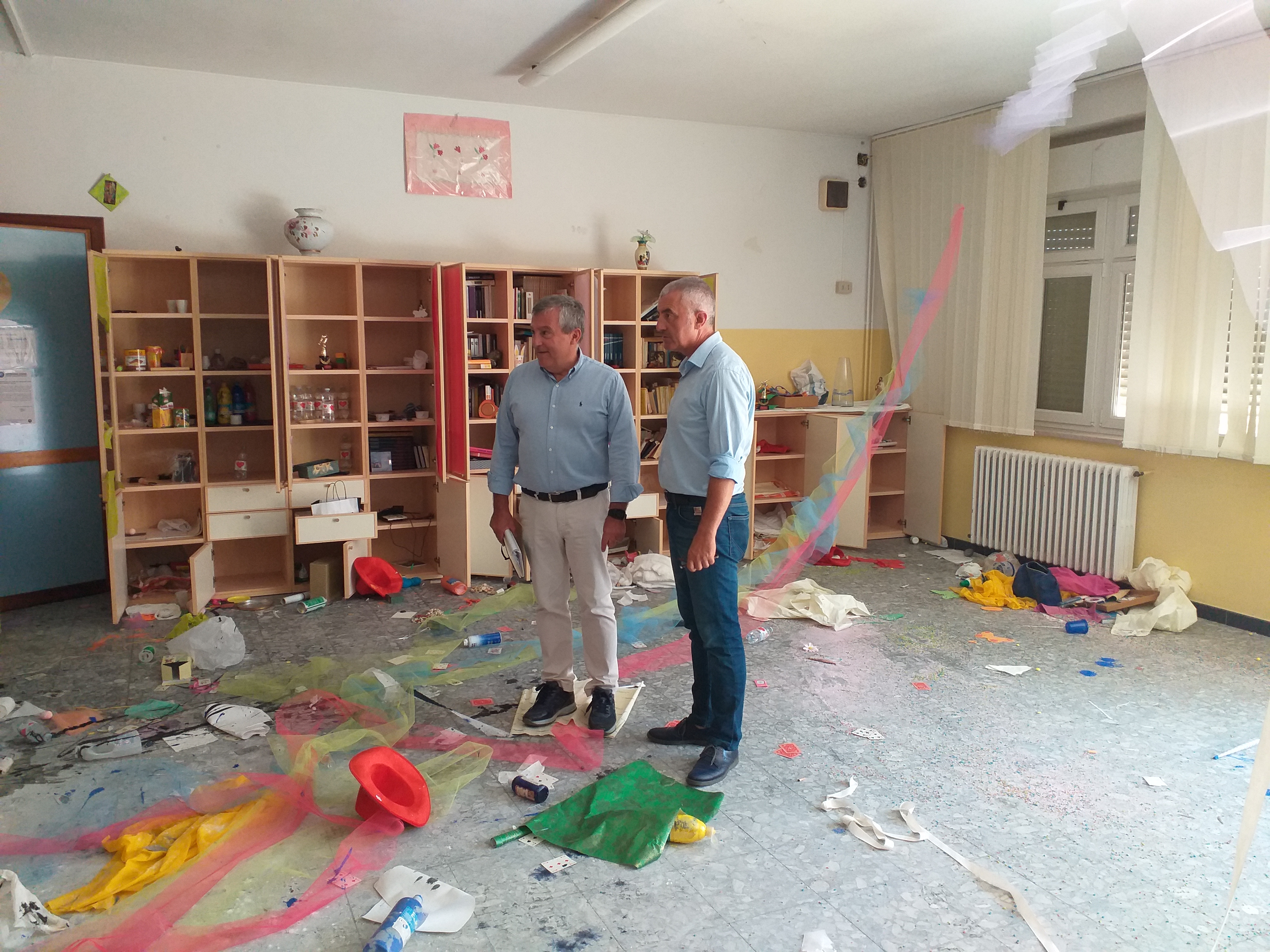 Ad un anno dallo sgombero del Centro Anziani di viale della Resistenza, il 20 luglio 2018, sembra passato un lustro. A ricordare ciò che era quel luogo fino all’anno scorso sono rimasti i pesci rossi della fontana dell’ingresso, ridotta ormai ad una fanghiglia. L’unico segno di vita. Il resto è ovunque devastazione, degrado, danneggiamenti, porte divelte, attrezzature distrutte, documenti sparsi dappertutto. C’è un profondo senso di desolazione per chi vi mette piede, specialmente per chi ha conosciuto il centro funzionante. Il primo a voler rendesi conto di persona di questo autentico disastro, annunciato, è stato il Sindaco Mario Conoci, che oggi ha visionato lo stato dei luoghi. La realtà si è dimostrata più forte della cronaca, di quella che nelle scorse settimane ha riferito dei raid vandalici. “Non ci sono parole per descrivere il sentimento di sgomento – ha detto oggi nel corso del sopralluogo effettuato a fine mattinata – una situazione di totale abbandono. È stato distrutto quanto di buono c’era. Ho scoperto ora che le attrezzature costosissime del settore cultura acquistate con centinaia di migliaia di euro di fondi europei sono in completo abbandono e sono state vandalizzate. E poi – aggiunge – c’è il resto della struttura, gli uffici sei servizi sociali le stanze dei degenti, archivi recentissimi, sino al 2015, con cartelle degli utenti e relativi dati sensibili lasciate in balia di chiunque, insomma una situazione di totale abbandono, oltre ai crolli. Ma l’abbandono ha creato più danni dei crolli, una situazione che fa piangere il cuore”. Il Sindaco ha evidenziato che sarebbe bastata semplice guardiania. “Mi domando “perché???” Sarebbe costata cento volte meno di quanto costerà invece recuperare i danni che sono stati fatti a seguito dell’abbandono e degli atti di vandalismo”. Si interviene ora insieme agli uffici del settore opere pubbliche. Al termine del sopralluogo Mario Conoci ha incontrato a Sant’Anna il dirigente e i funzionari del settore lavori pubblici. La prima cosa da fare è recuperare attrezzature, mobili, suppellettili, documenti che si trovano all’interno e metterli al sicuro. Col dirigente si valuta inoltre la possibilità di mettere urgentemente la struttura sotto guardiania e con il settore dei lavori pubblici si inizia a valutare la ristrutturazione dell’edificio.