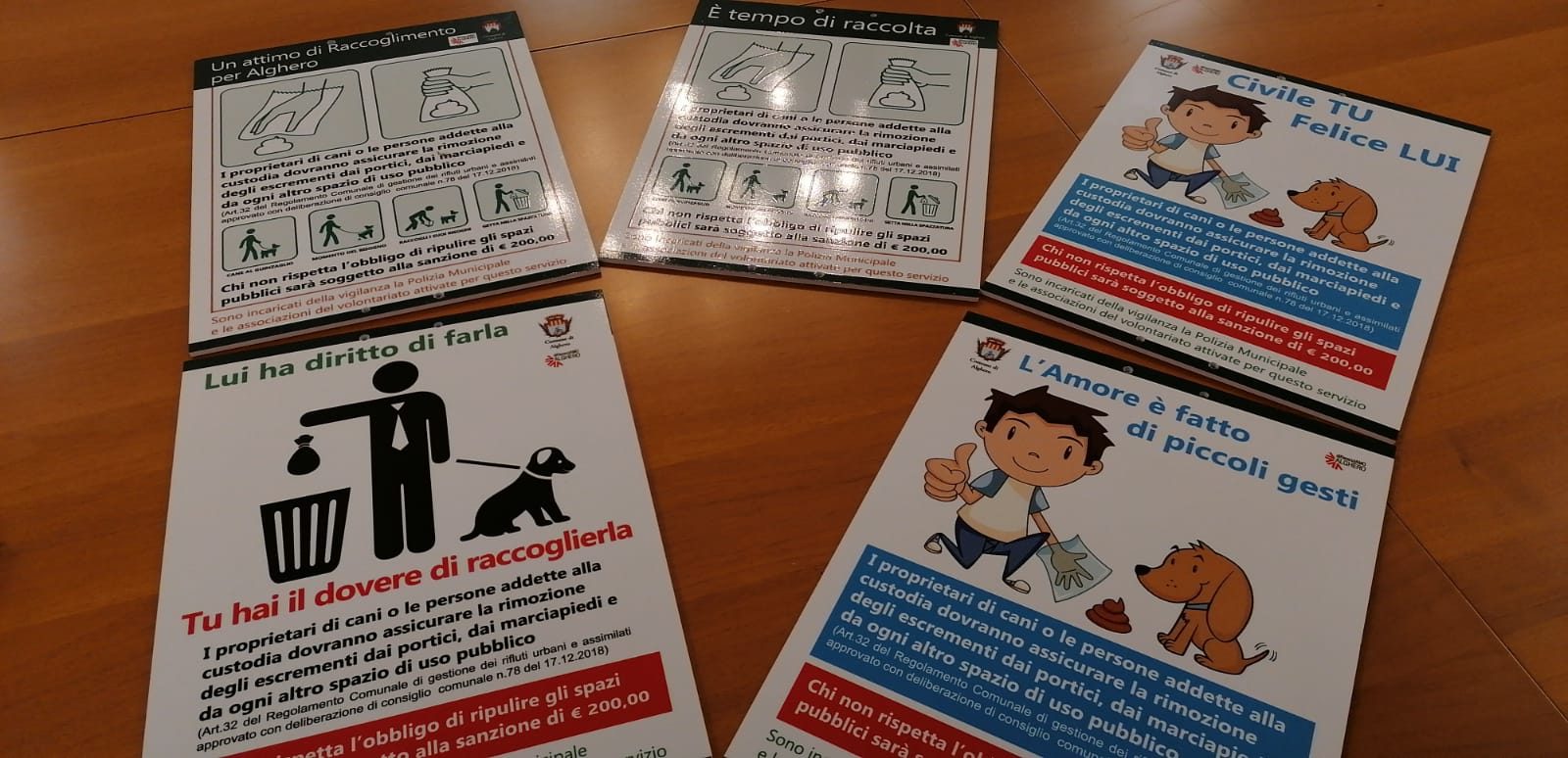 Al via la campagna di sensibilizzazione dell’Assessorato all’Ambiente sul rispetto delle norme da parte dei possessori dei cani. In questi giorni si sta procedendo a installare circa un centinaio di cartelli nei punti più critici dove problematica si registra più spesso. La campagna di sensibilizzazione che riporta gli slogan ” E’ tempo di raccolta” – ” L’amore è fatto di piccoli gesti” -” Lui ha il diritto di farla tu hai il dovere di raccoglierla” -” Un attimo di raccoglimento per Alghero” – ” Civile tu Felice lui”, ha l’obbiettivo di responsabilizzare i cittadini sul dovere di raccogliere le deiezioni.