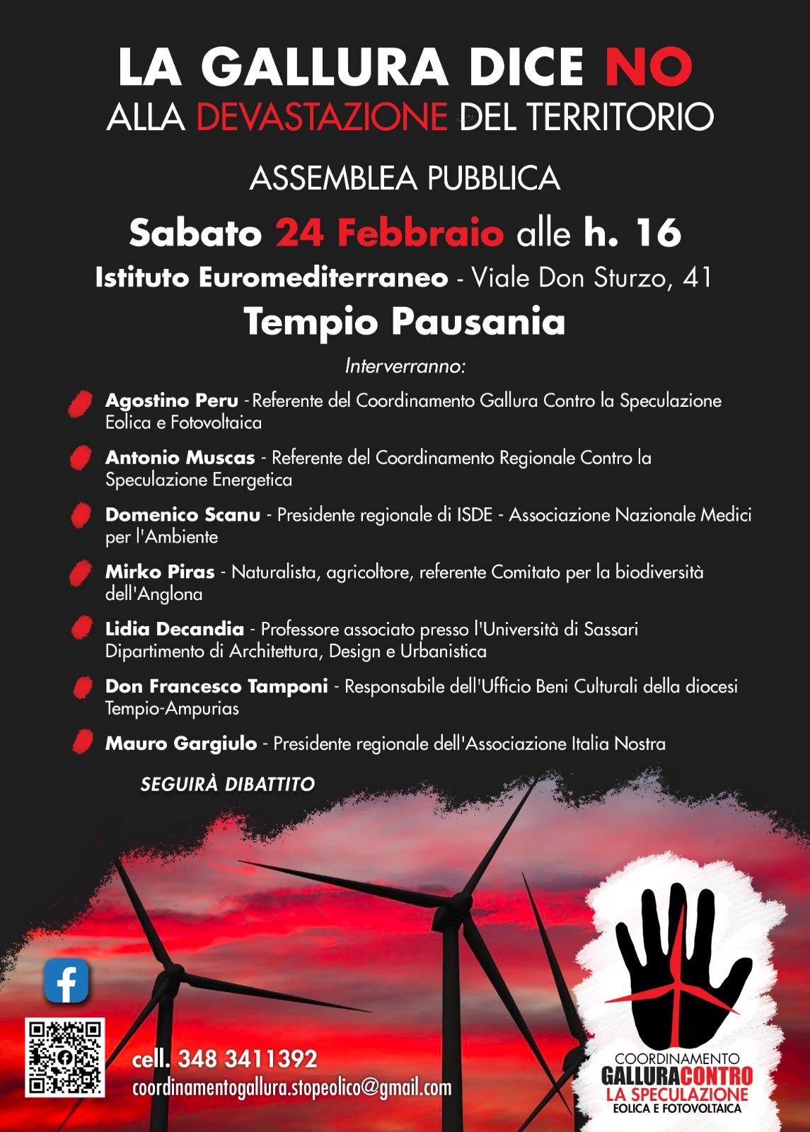 ASSEMBLEA PUBBLICA TEMPIO PAUSANIA 24 FEBBRAIO 2024 ORE 16 PRESSO ISTITUTO EUROMEDITERRANEO
