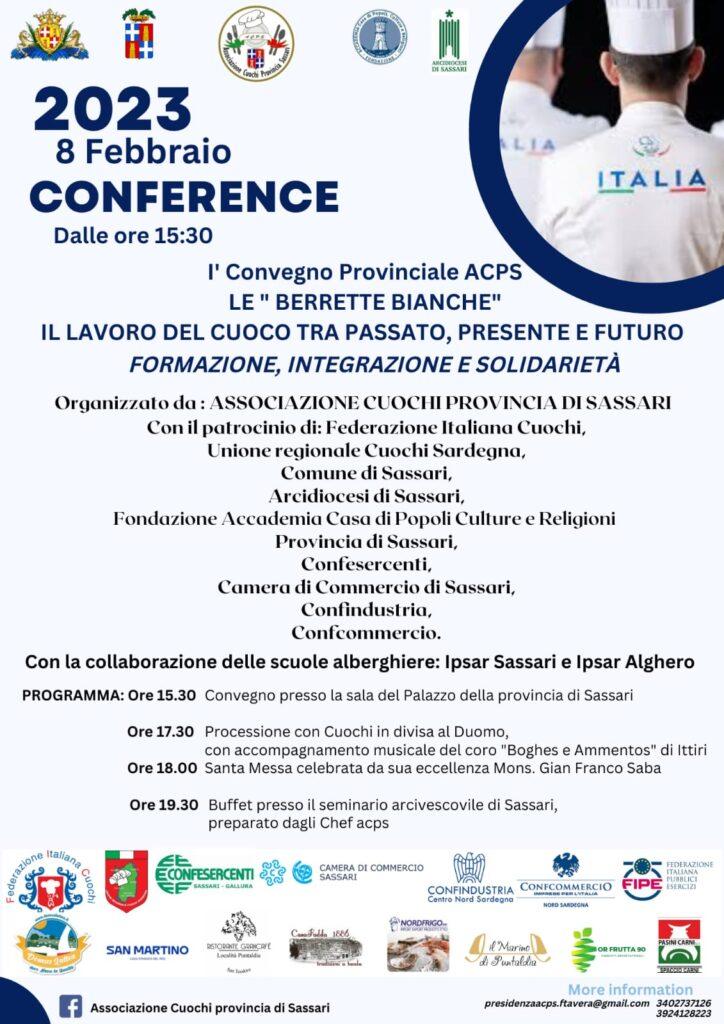 “Berrette bianche”, oltre all’organizzazione dell’Acps, vede la collaborazione delle scuole alberghiere Ipsar di Sassari e Alghero, e si avvale del patrocinio della Federazione Italiana Cuochi, dell’Unione Regionale Cuochi Sardegna, del Comune di Sassari, dell’Arcidiocesi di Sassari, della provincia di Sassari, di Confesercenti, della Camera di Commercio di Sassari e di Confindustria.
