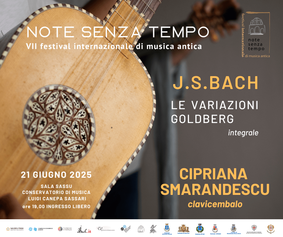 SASSARI. Le note magiche del clavicembalo di Cipriana Smarandescu approdano al Festival internazionale di musica antica “Note Senza Tempo” per far rivivere un’opera unica e ineguagliabile in occasione della Giornata mondiale della musica. Sabato 21 giugno alle 19, nella Sala Sassu del Conservatorio Luigi Canepa di Sassari, l’artista di origini rumene interpreterà la versione integrale delle “Variazioni Goldberg” di Johann Sebastian Bach, una rarissima esecuzione dal vivo che rappresenta un vero monumento di tecnica compositiva e capacità di toccare ogni possibilità espressiva dello strumento.