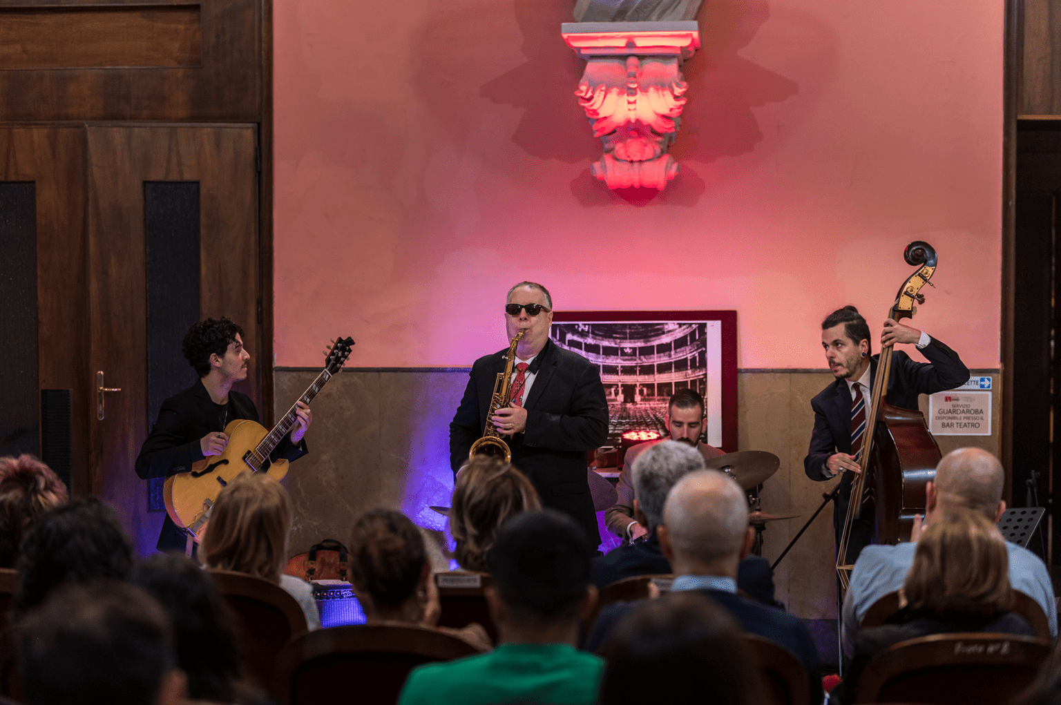 SASSARI. Un successo travolgente e una ovazione da star per il jazzista Harry Allen in trasferta a Sassari all’apertura del suo tour europeo. Il grande sassofonista americano si è esibito tra applausi scroscianti nel foyer del Teatro Verdi completamente esaurito, per un evento di risonanza internazionale che è parte della sezione Jazz del Festival Contrasti 2025 – “Spring Edition”.