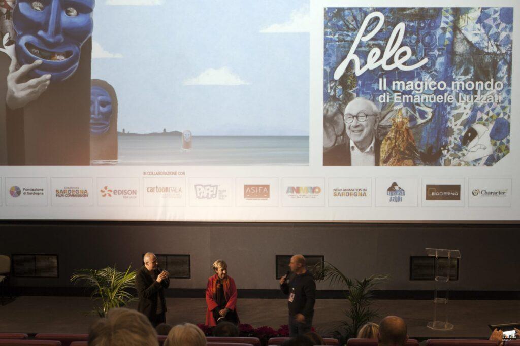 Di Lorenzon è passato sullo schermo anche l’ironico documentario sulla Sardegna, oggetto, insieme ad altre regioni di una rivisitazione anti-retorica delle bellezze locali. Dall’animazione di oggi a quella di ieri, ma sempre attuale, con Manfredo Manfredi, che ha presentato “Dedalo”, lo straordinario corto con cui, nel 1975, fu candidato all’Oscar: “Tutto quello che avveniva all’interno del fotogramma era un dramma che partiva da me e finiva a me”. Provocatorio e spiazzante il terzo ospite del SFF, Luis Nieto, con quattro opere al limite tra realtà e costruzione simbolica: “Io non imbroglio”, ha spiegato il cineasta colombiano, rispondendo a una considerazione di Raffaelli, “io gioco con lo spettatore”. La serata è stata conclusa dal documentario di Matteo Valenti su Emanuele Luzzati, il geniale artista genovese di cui quest’anno ricorre il centenario della nascita. A introdurre l’opera, oltre al regista, era presente anche Carla Rezza, moglie di Giulio Gianini, con cui Luzzati creò capolavori dell’animazione come “La gazza ladra” e “Pulcinella”, entrambi candidati all’Oscar.