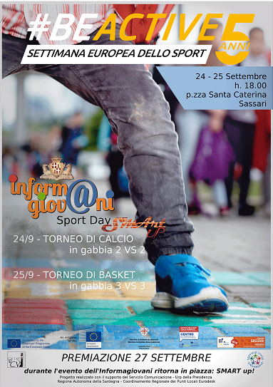 In occasione della Settimana Europea dello Sport, l’Informagiovani/Agenzia Locale Eurodesk del Comune di Sassari organizza il 24 e 25 settembre in piazza santa Caterina lo Smart Up Sport’s day.