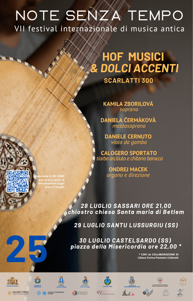 La manifestazione, diretta artisticamente da Daniele Cernuto, è organizzata dall’associazione Dolci Accenti con il contributo della Regione Autonoma della Sardegna, della Fondazione di Sardegna e dei Comuni di Sassari, Uri, Porto Torres e Monteleone Roccadoria. Il programma dettagliato può essere consultato sul sito web www.notesenzatempo.it.