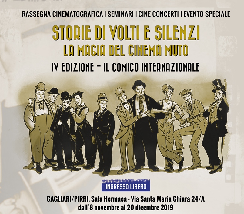 Dall’8 novembre al 20 dicembre la rassegna cinematografica “Storie di volti e silenzi – la magia del cinema muto” IV edizione, propone 52 film per quattordici serate alla Sala Hermaea di Cagliari-Pirri, accompagnate da cinque seminari introduttivi di altrettante sezioni, cinque cine-concerti e un evento speciale al Teatro Intrepidi Monelli