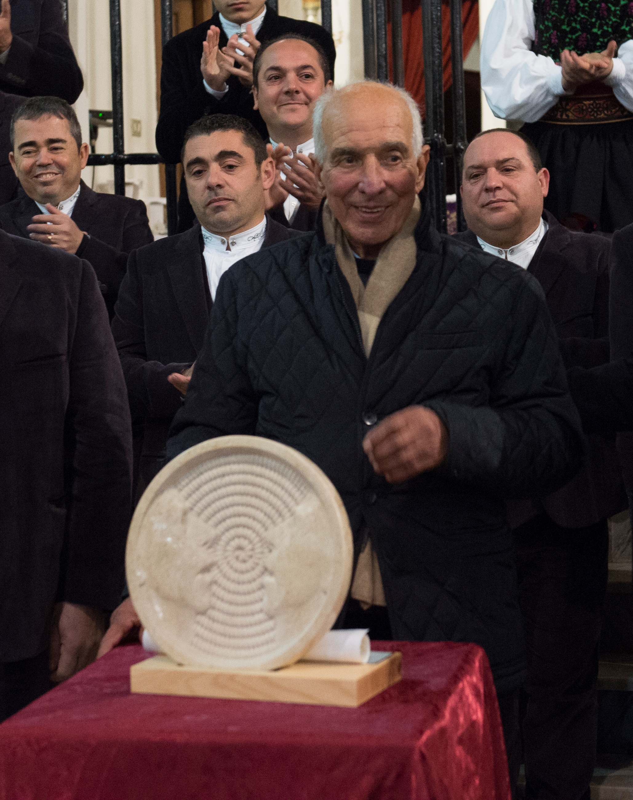 Certificano le motivazioni del premio una elegante opera realizzata in marmo dall’artista Luca Cosseddu. Due volti che cantano, parlano e trasmettono memorie, arte di canto, musica e poesia su un cesto, una voluta di vimini, un’evoluzione continua, la nascita di un nuovo sapere attraverso l’intreccio e il circolo della sua tessitura.