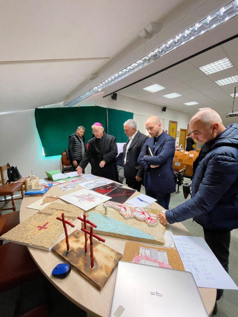 La città Alghero si prepara a rivivere uno dei momenti più identitari ed intimi della sua tradizione, tra le vie della città ed il calore della sua gente. Ritornano le Processioni in occasione della Setmana Santa a l’Alguer e le numerose celebrazioni religiose alla presenza dei fedeli: scelta nei giorni scorsi in collaborazione tra la Diocesi Alghero-Bosa, la Confraternita della Misericordia, l’Amministrazione Comunale e la Fondazione Alghero l’immagine che affiancherà la comunicazione, grazie al prezioso contributo del Liceo Artistico “F.Costantino” di Alghero. L’immagine che rappresenta i riti 2023 è il “Cristo con la Corona” di Nicolas Giovanni Marras, classe 2A. Per l’esecuzione di quest’opera, lo studente si ispira al grande pittore italiano Guido Reni, in particolare al dipinto realizzato nel 1637 “Cristo incoronato di spine”. L’elaborato è realizzato con la tecnica puntinista bicolore ed è suddiviso in due parti: in quella superiore appare la maestosa figura di Cristo col capo cinto da una corona di spine, simbolo di un’umiltà che diventa trionfo e grandezza regale, di una sofferenza vittoriosa che è messaggio di Vita, Speranza e Salvezza per tutti. La sofferenza fisica che traspare nel volto di Nostro Signore rimane trattenuta e mitigata dalla consapevolezza del valore salvifico della Passione. Nella parte inferiore la città catalana si tinge di rosso. Cristo dall’alto sorveglia e protegge la città di Alghero mostrando l’atto umano più nobile; morire per gli altri. Emergono la malvagità umana e al contempo l’immensità dell’Amore divino. Dio non abbandona nessuno e l’opera invoca preghiera e perdono. Ai lati della composizione delicati ramoscelli di corallo rosso a simboleggiare il sangue di Cristo versato per la salvezza dell’umanità. Secondo e terzo classificato gli studenti Adriana Caria, classe 4A Architettura e Monica Paolino, classe 5B Grafica Pubblicitaria.