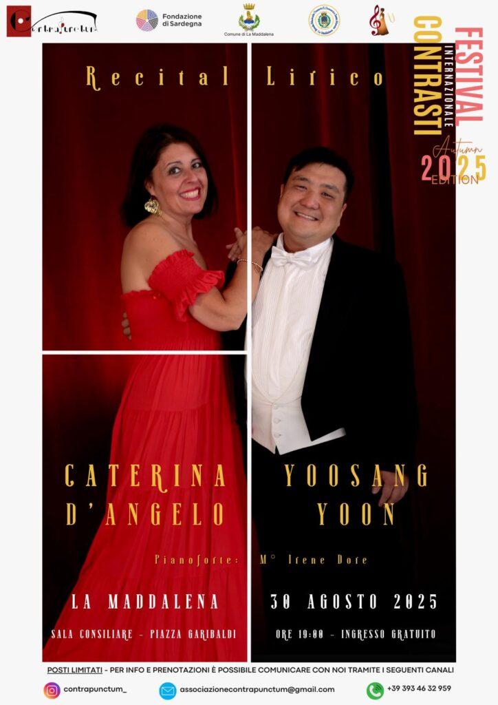 LA MADDALENA. Un recital lirico che riunisce sul palco tre interpreti d’eccezione provenienti dal prestigioso Teatro dell’Opera di Roma, una tra le istituzioni di settore più rinomate a livello mondiale. Sabato 30 agosto alle 19, nella Sala Consiliare di piazza Garibaldi, alla Maddalena, il Festival Internazionale Contrasti inaugura la sua Autumn Edition con un evento di straordinaria intensità musicale. Protagonisti di “Un viaggio nel cuore dell’Opera” saranno il mezzosoprano Caterina D’Angelo e il tenore Yoo Sang Yoon, che si distinguono per una carriera che coniuga sapientemente l’attività corale con quella solistica, accompagnati al pianoforte dal maestro Irene Dore, artista di consolidata esperienza nel panorama musicale internazionale. L’ingresso è libero e gratuito.