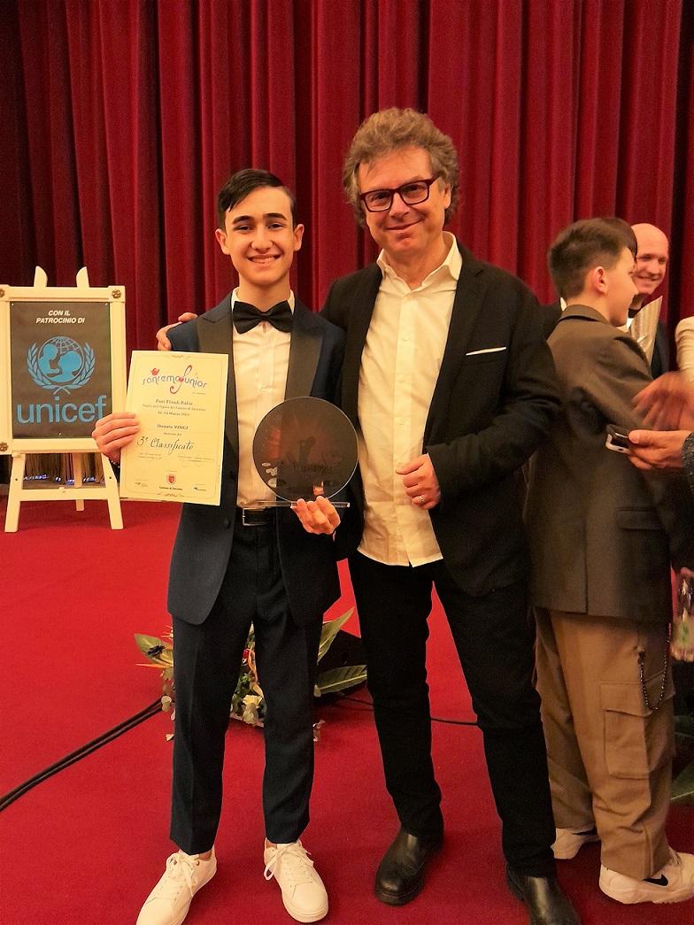 SANREMO. Quattordici anni, studente della prima liceo al Classico Musicale Azuni di Sassari con già tanti successi alle spalle, il cantante sassarese Mario Donato Vinci ha conquistato il terzo posto all’edizione 2023 di Sanremo Junior, la massima rassegna musicale italiana per ragazzi dai 6 ai 15 anni, che si è svolta tra il 24 e il 25 marzo al Teatro dell’Opera del Casinò della rinomata città ligure.